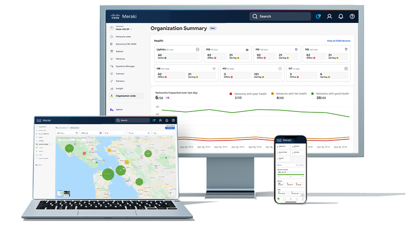 Provision, configure, and troubleshoot your global networking and IoT deployment in one place—the Meraki dashboard.